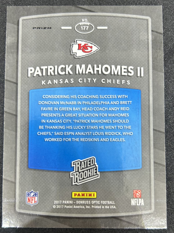 You are purchasing a 2017 Panini Donruss Optic Patrick Mahomes II #177 Pink. You will receive the exact item in the photographs. Thank you for looking.