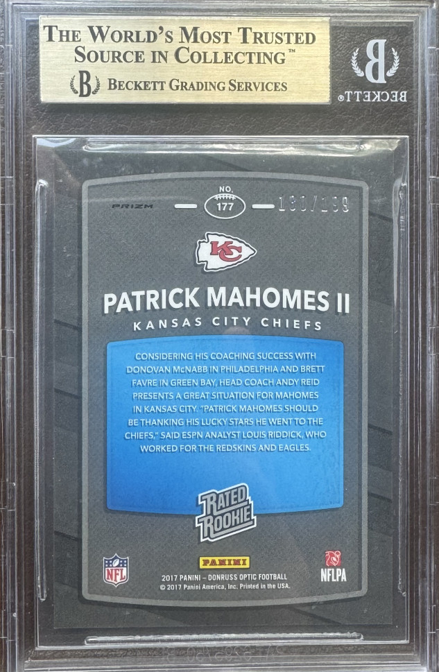 2017 Patrick Mahomes Panini Donruss Optic Rated Rookie Orange /199 True Gem+