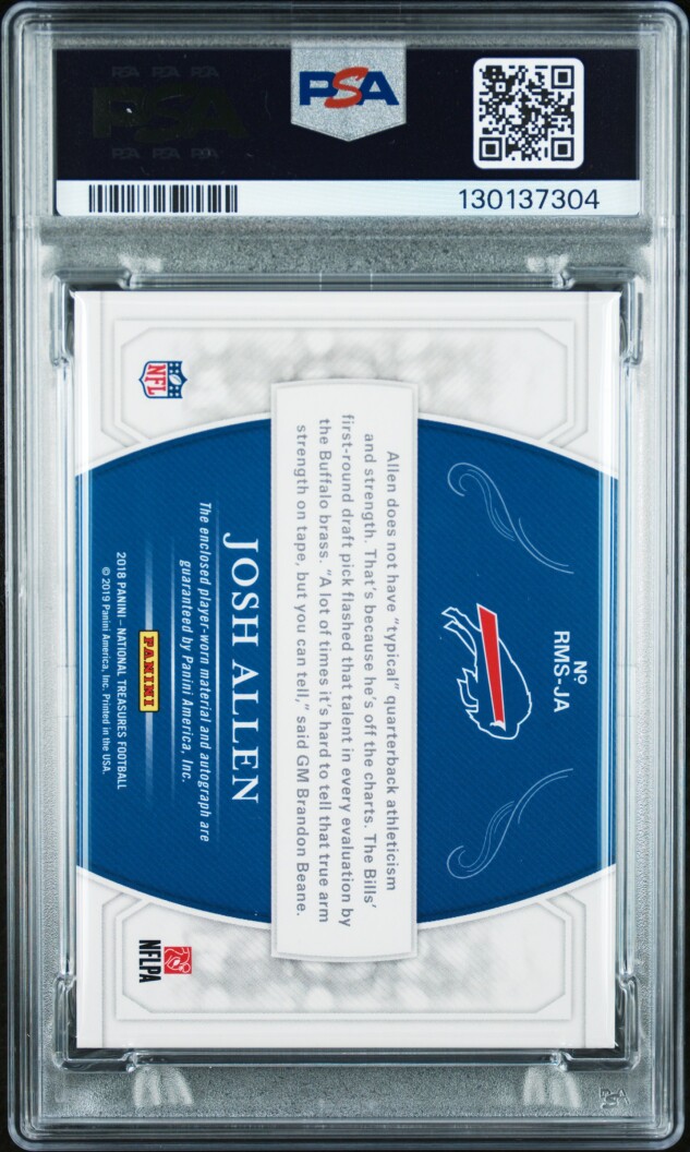 You are purchasing a 2018 Panini National Treasures Rookie Material Signatures RPS Josh Allen RKE. Mat. SIG. RPS GRN. Nmbr. PSA 8. You will receive the exact item in the photographs. Thank you for looking.