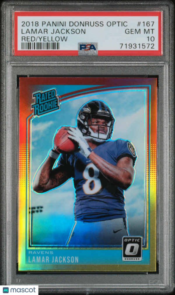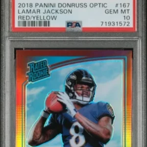 You are purchasing a 2018 Panini Donruss Optic Lamar Jackson #167 Red Yellow Short Print Rookie PSA 10. You will receive the exact item in the photographs.