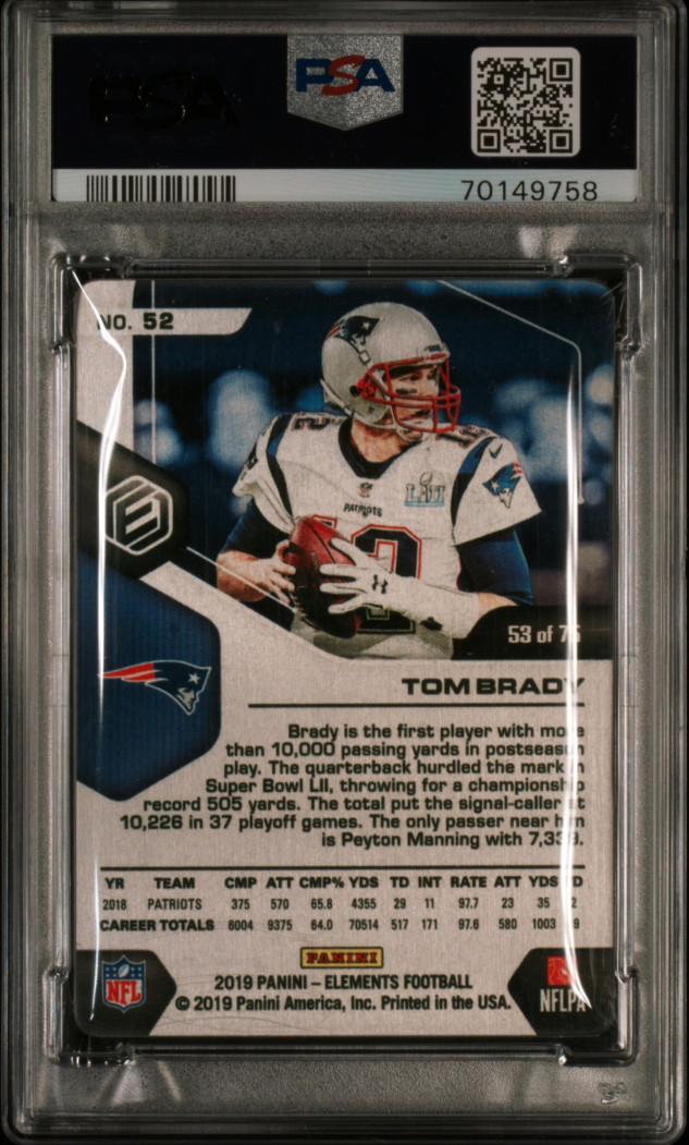 2019 Panini Elements Tom Brady #52 PSA 6 /75 with cover Looks like Protective cover could be peeling in slab
