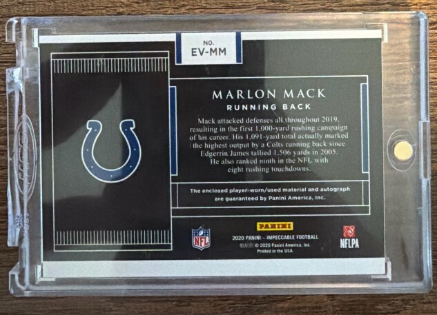 2020 Impeccable Football Marlon Mack Patch Auto /75