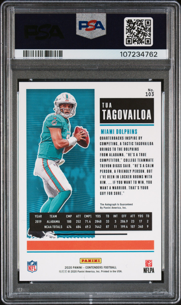 2020 Panini Contenders Football Tua Tagovailoa Rookie Ticket On Card Auto Psa 10