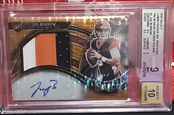 2020 Select Jumbo Rookie Signature Swatches Neon Orange Pulsar Prizm #1 Joe Burrow Beckett 9 Auto 10