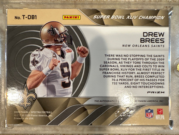 2020 Spectra Drew Brees SB Champion Gold Vinyl 1/1 Auto
