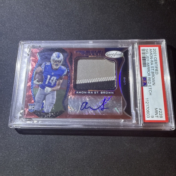 2021 Certified Freshman Fabric Amon-Ra St Brown Red Rookie Patch Auto /20 Pop1