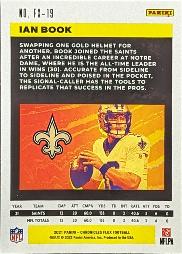 2021 Panini Chronicles Flux Rookies Insert #FX-19 Ian Book New Orleans Saints RC
