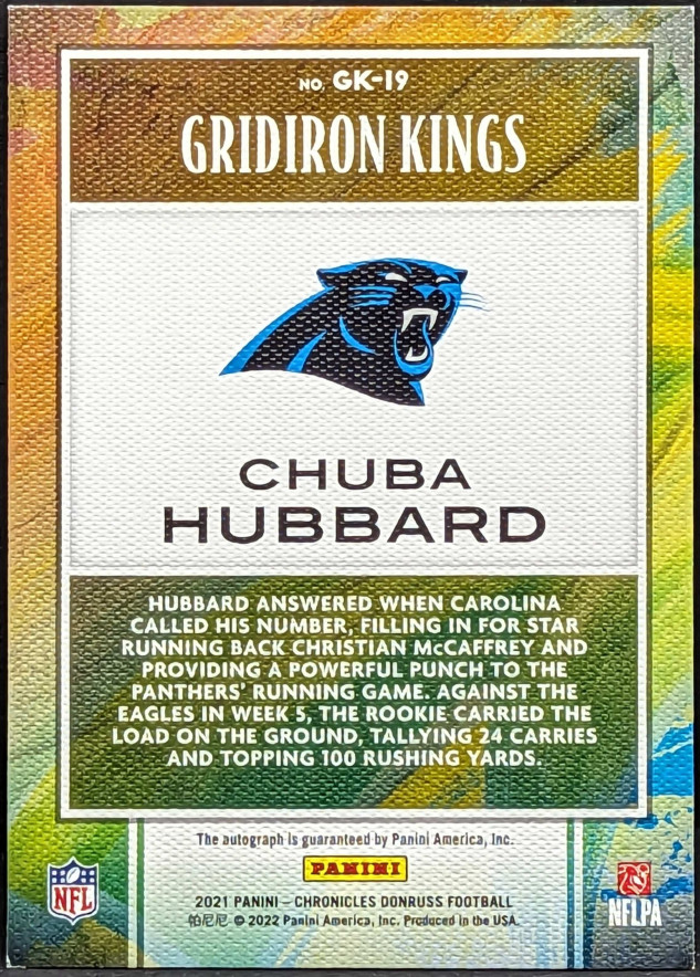 2021 Panini Chronicles Gridiron Kings Insert Bronze Parallel #GK-19 Chuba Hubbard Carolina Panthers