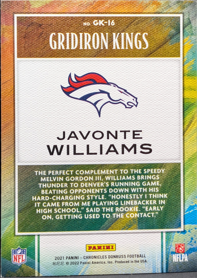 2021 Panini Chronicles Gridiron Kings Insert #GK-16 Javonte Williams Denver Broncos
