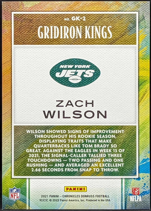 2021 Panini Chronicles Gridiron Kings Pink Insert #GK-2 Zach Wilson New York Jets RC