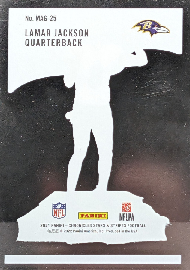 2021 Panini Chronicles Magnitude Insert #MAG-25 Lamar Jackson Baltimore Ravens Clear Acetate
