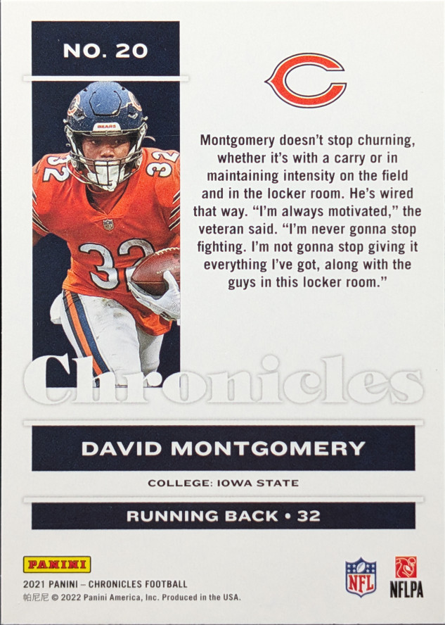 2021 Panini Chronicles Pink Parallel #20 David Montgomery Chicago Bears