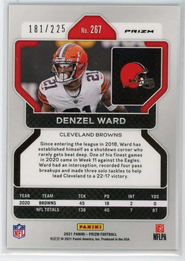 2021 Panini Prizm #267 Denzel Ward Rookie Prizms Purple Ice /225