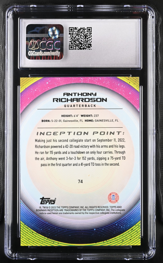 2022-23 Bowman University Inception #74 Anthony Richardson /50 CGC 10