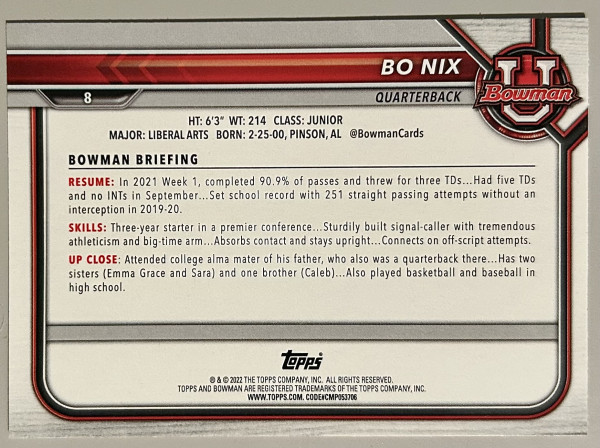 2022 Bowman U 1st Bowman Bo Nix #8 - Auburn