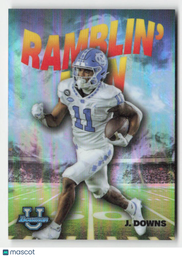 You are purchasing a 2022 Bowman University Chrome Josh Downs #RM-10 Ramblin' Man. You will receive the exact item in the photographs. Thank you for looking.