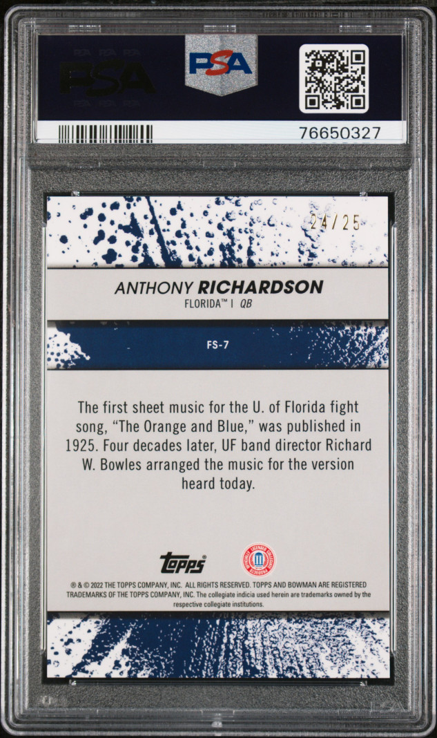 2022 Bowman's Best University Fight Song Anthony Richardson Fight Song-Orange Ref /25 PSA 10