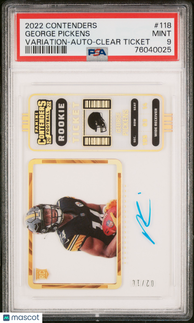 You are purchasing a 2022 Panini Contenders George Pickens Variation Auto Clear Ticket PSA 9. You will receive the exact item in the photographs. Thank you for looking.