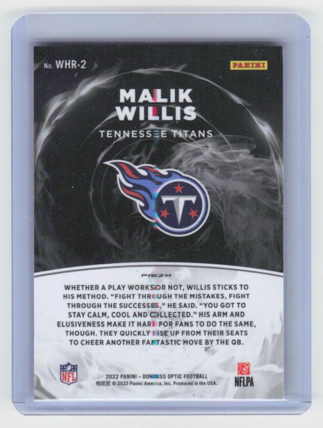 You are purchasing a 2022 Donruss Optic Malik Willis #WHR-2 White Hot Rookies. You will receive the exact item in the photographs. Thank you for looking.