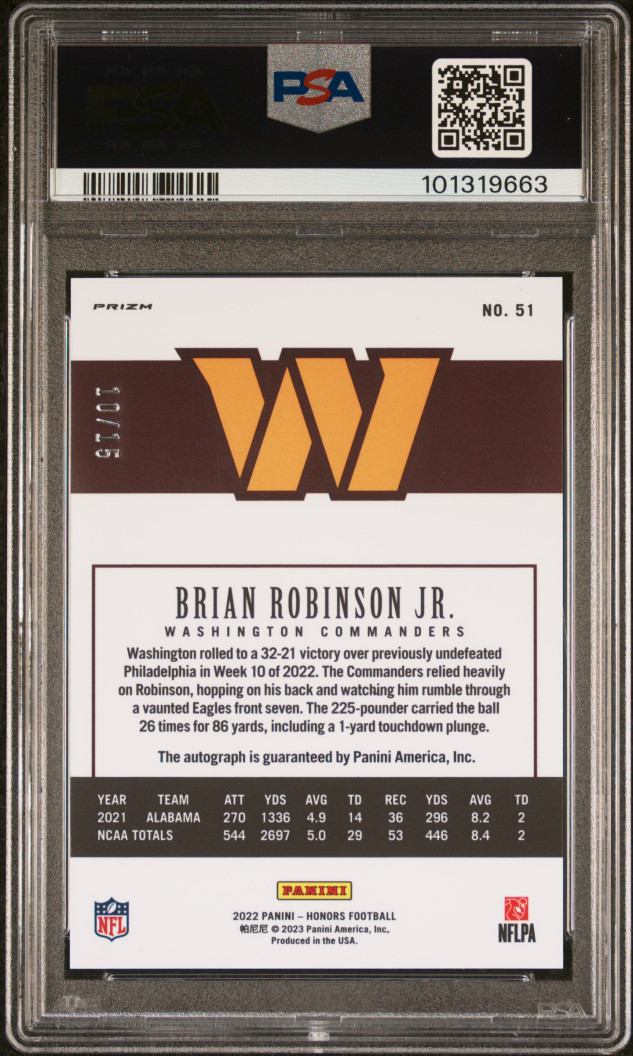 2022 Panini Honors Brian Robinson Jr. Signature-Purple 10/15