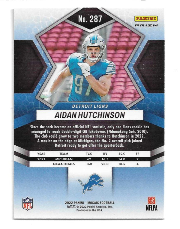 2022 PANINI MOSAIC MOSAIC GREEN #287 AIDEN HUTCHINSON (RC)