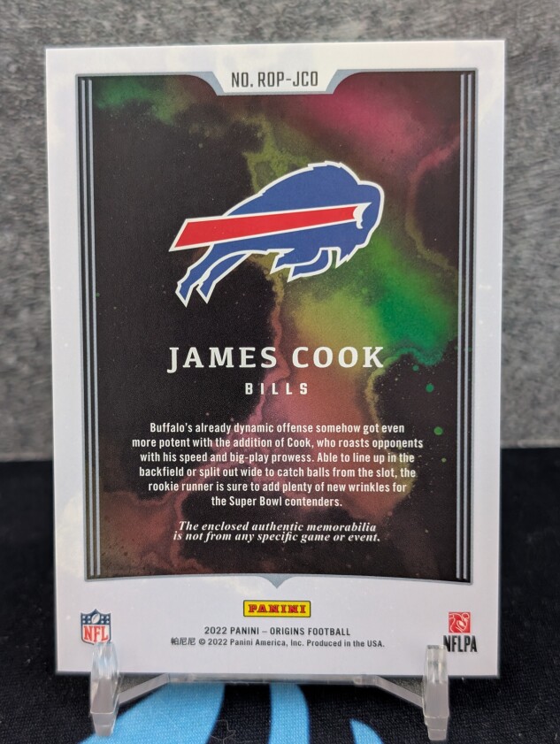This is a 2022 Panini Origins James Cook Rookie RC Jersey Patch /199. The exact card is pictured.