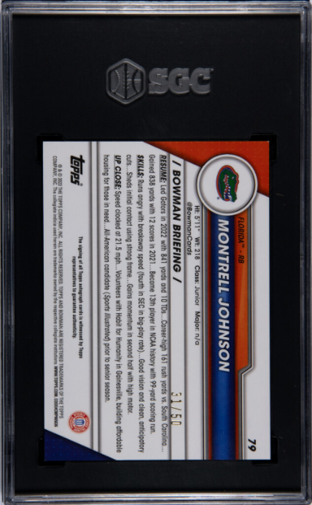2023 Bowman University Chrome Montrell Johnson SGC 10 /50