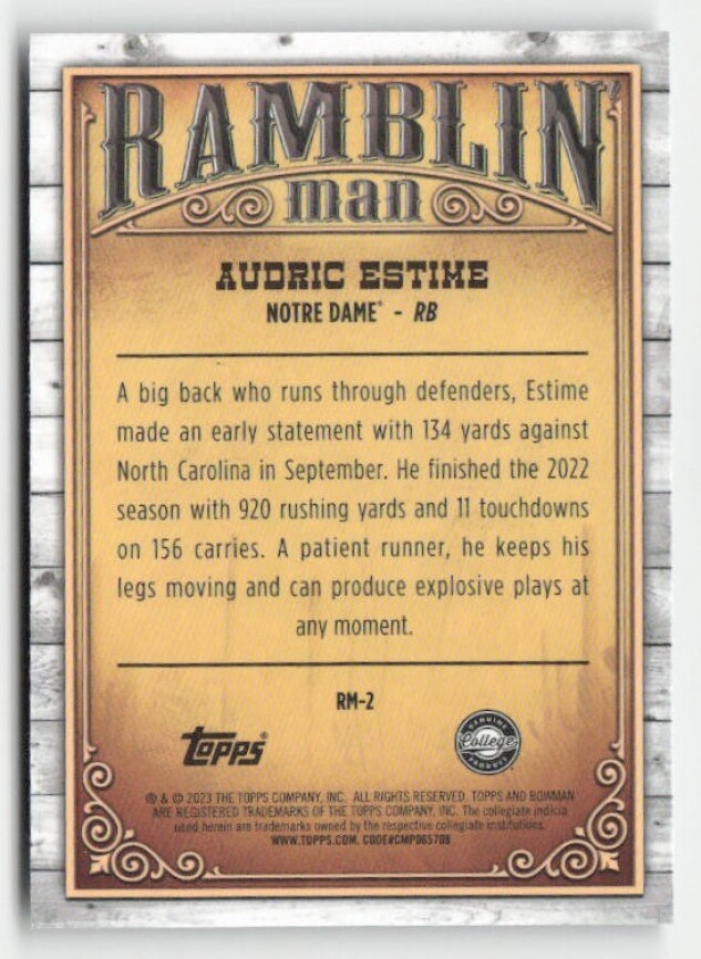 2023 Bowman University Chrome #RM-2 Audric Estime Ramblin' Man