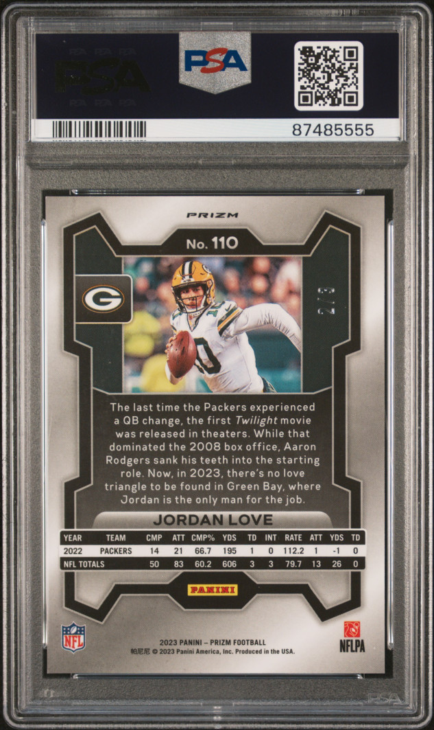 2023 Jordan Love White Knight Prizm #110, 2/3 PSA 10 Super Rare!