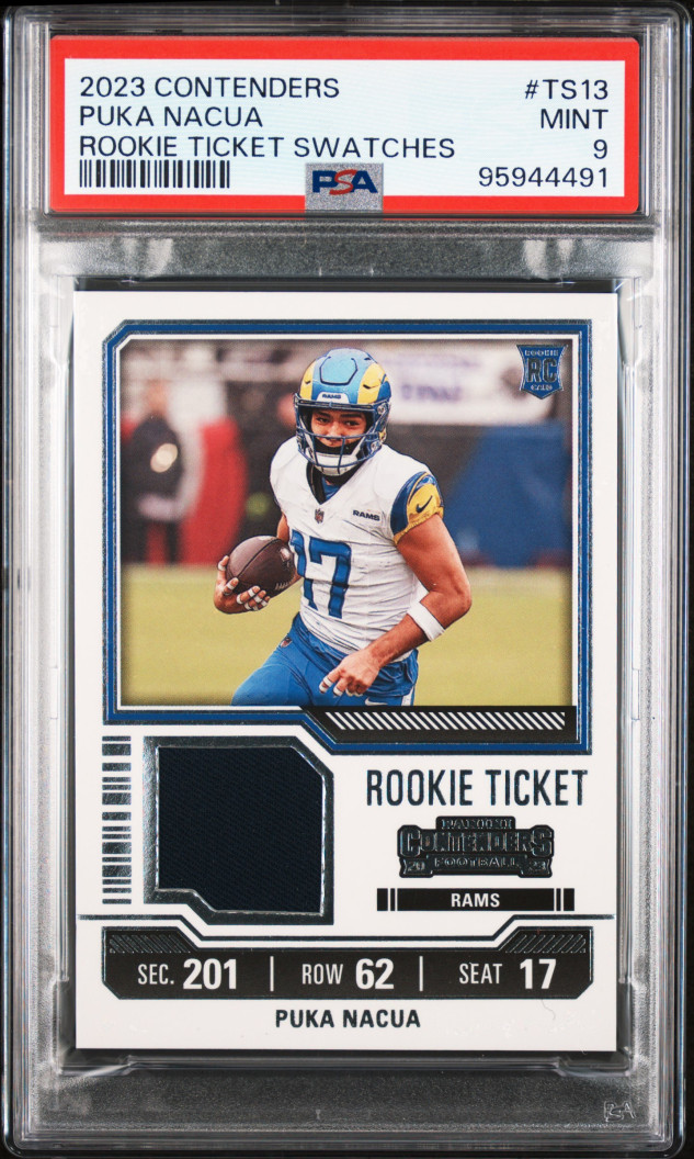 2023 Panini Contenders Rookie Ticket Swatches Puka Nacua PSA 9