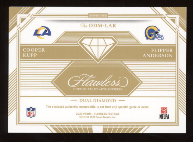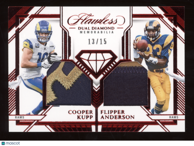 You are purchasing a 2023 Panini Flawless Dual Diamond Flipper Anderson Cooper Kupp #DDM-LAR Ruby 13/15. You will receive the exact item in the photographs. Thank you for looking.
