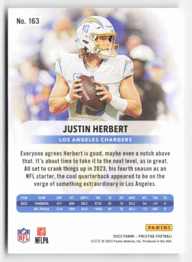 You are purchasing a 2023 Panini Prestige Justin Herbert #163 Xtra Points Galaxy. You will receive the exact item in the photographs. Thank you for looking.