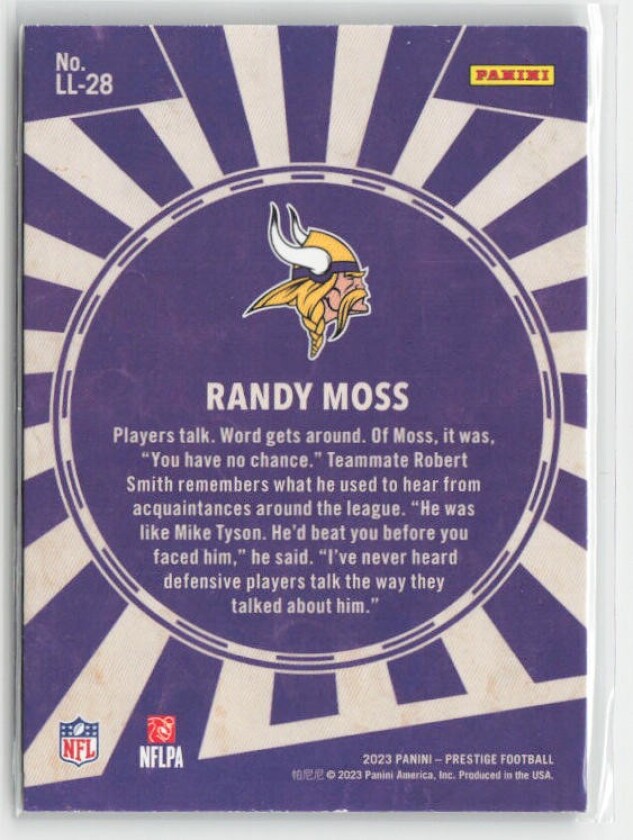 You are purchasing a 2023 Panini Prestige Randy Moss #LL-28 Living Legends. You will receive the exact item in the photographs. Thank you for looking.