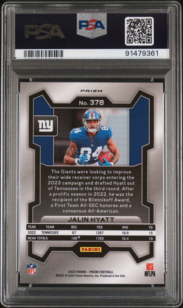 You are purchasing a 2023 Panini Prizm Jalin Hyatt #378 Silver Short Print Rookie PSA 10. You will receive the exact item in the photographs.