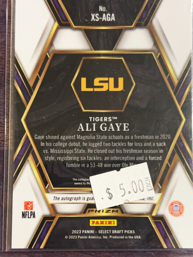 You are purchasing a 2023 Panini Select Draft Picks Prizm Ali Gaye #XS-AGA X-Factor RC. You will receive the exact item in the photographs. Thank you for looking.