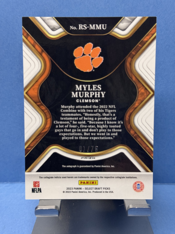 2023 Panini Select Draft Picks RS-MMU Myles Murphy Gold Lazer Prizm Autograph #1/75