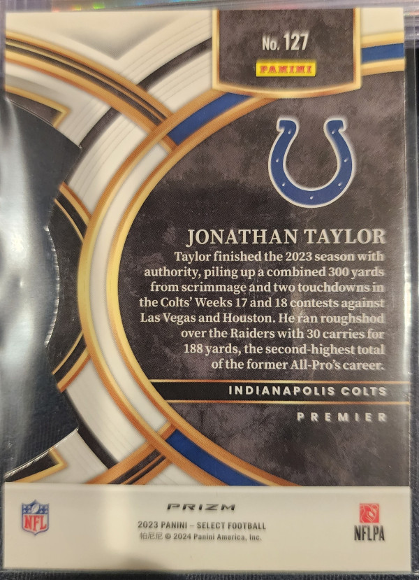 2023 Select Premier Level Jonathan Taylor Red/Yellow Die Cut