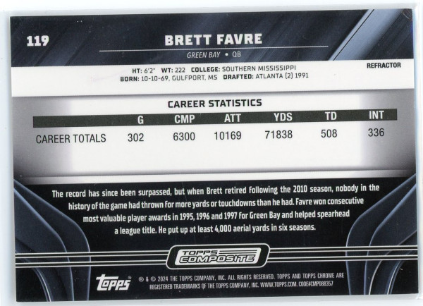 2023 Topps Composite Chrome #119 Brett Favre Black Refractor /199