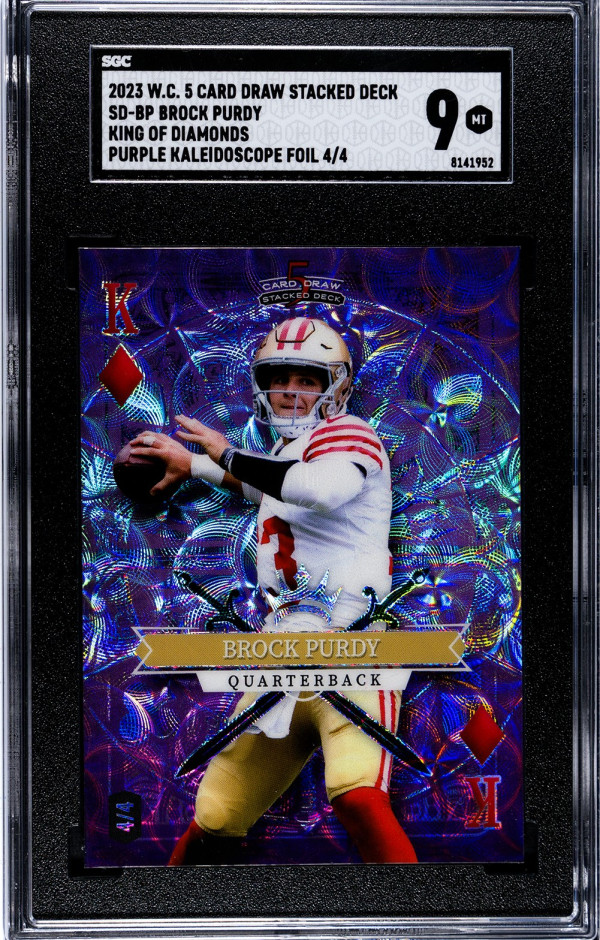2023 W.c. 5 Card Draw Stacked Deck Sd-bp Brock Purdy King Of Diamonds Purple Kaleidoscope Foil 4/4