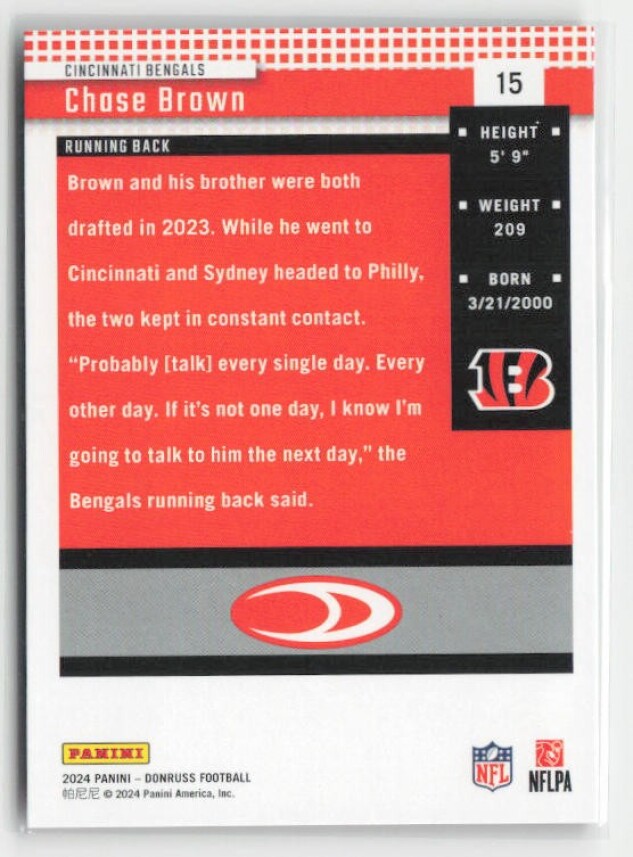 You are purchasing a 2024 Donruss Chase Brown #15 Retro 2004. You will receive the exact item in the photographs. Thank you for looking.