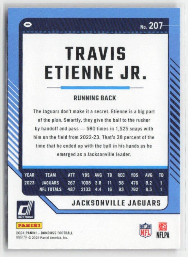 You are purchasing a 2024 Donruss Travis Etienne Jr. #207 Press Proof Red. You will receive the exact item in the photographs. Thank you for looking.