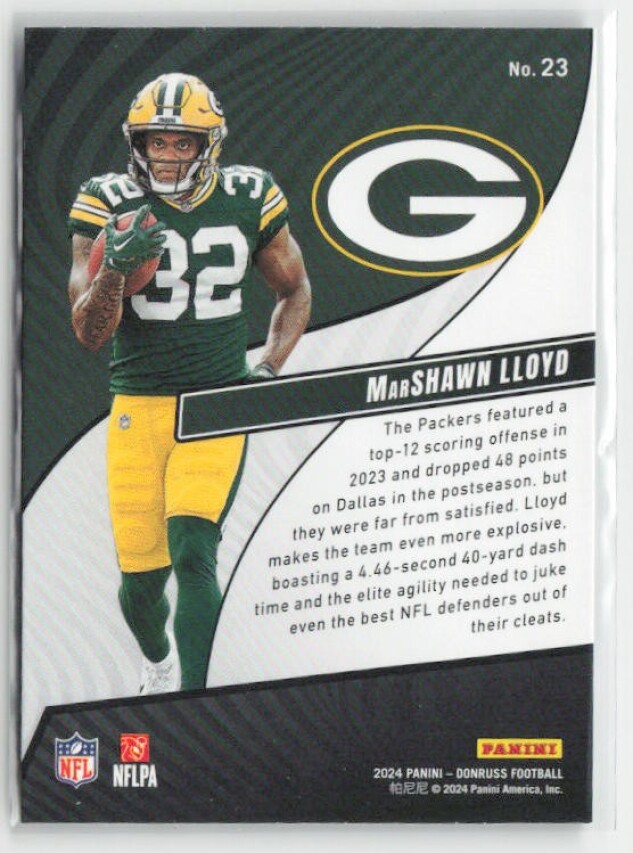 You are purchasing a 2024 Donruss MarShawn Lloyd #23 Rookie Revolution. You will receive the exact item in the photographs. Thank you for looking.