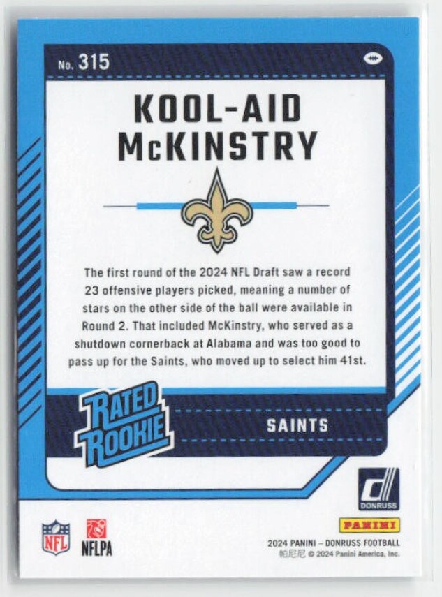 You are purchasing a 2024 Donruss Kool-Aid McKinstry #315 RC. You will receive the exact item in the photographs. Thank you for looking.