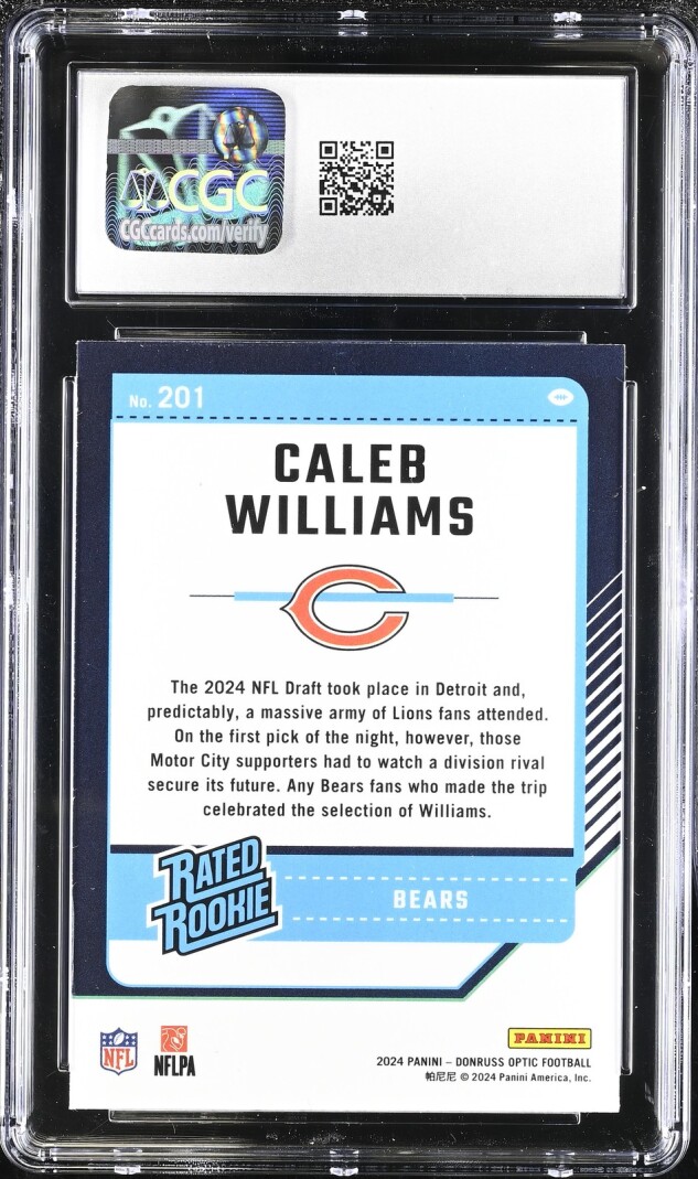 You are purchasing a 2024 Donruss Optic Caleb Williams #201 RC CGC 8. You will receive the exact item in the photographs. Thank you for looking.