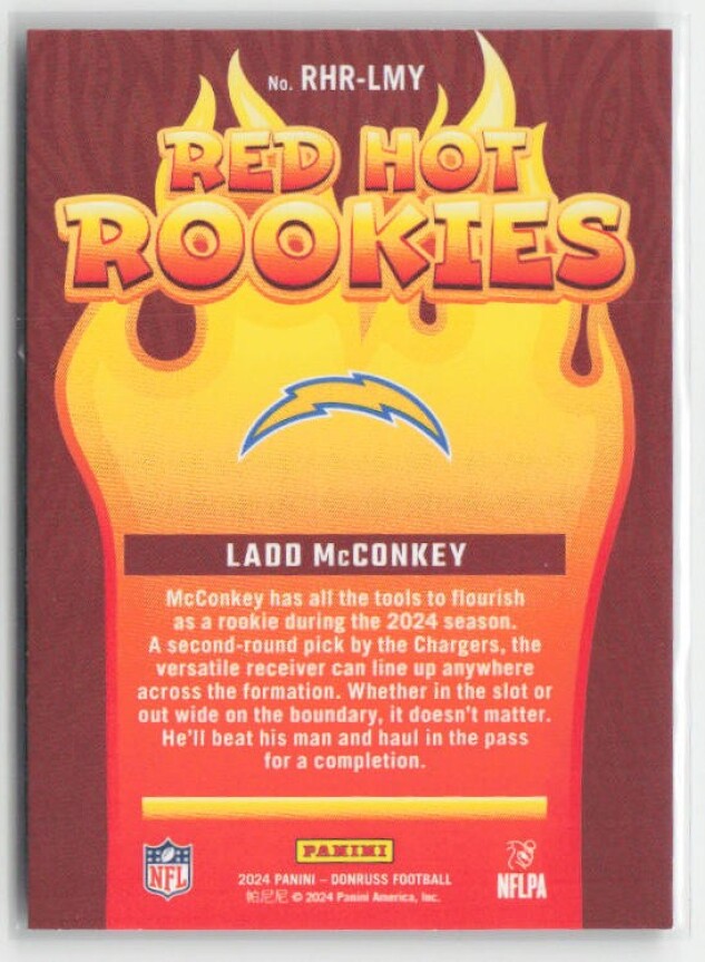 You are purchasing a 2024 Donruss Ladd McConkey #RHR-LMY Red Hot Rookies. You will receive the exact item in the photographs. Thank you for looking.