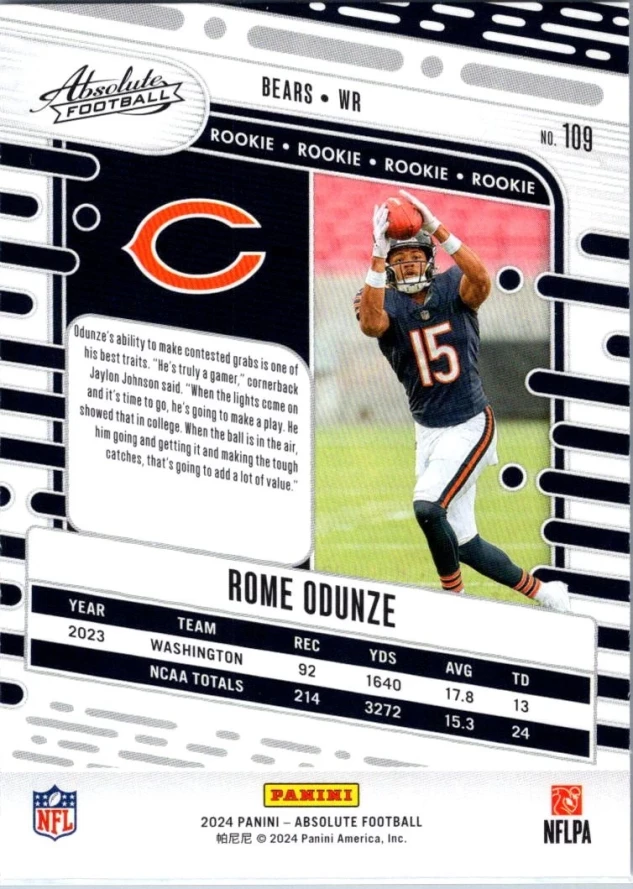 This is a nice example of a 2024 Panini Absolute #109 Rome Odunze Retail