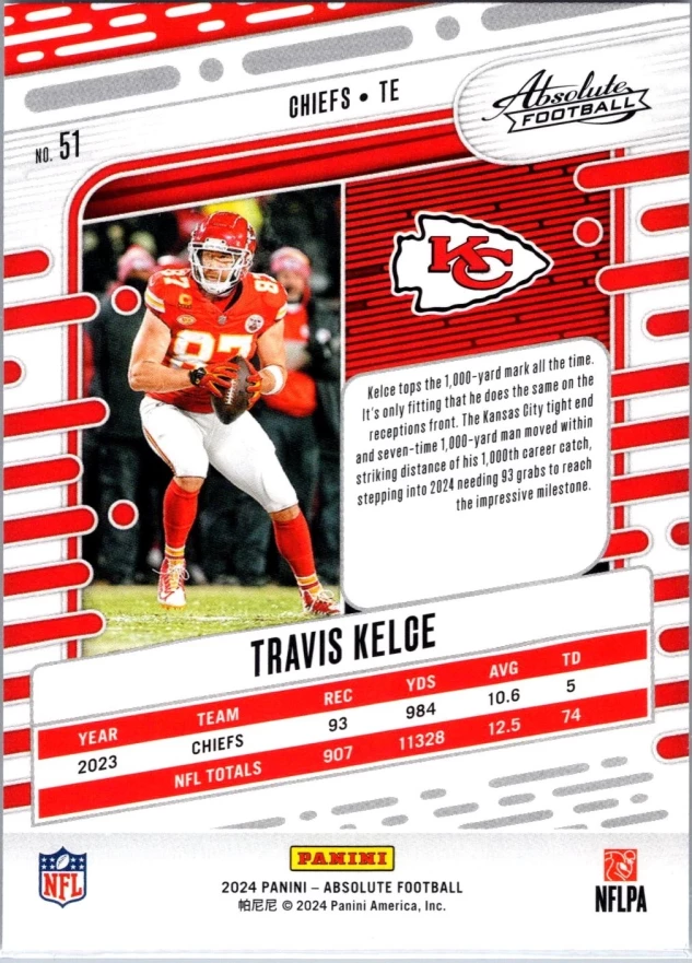 This is a nice example of a 2024 Panini Absolute #51 Travis Kelce Retail