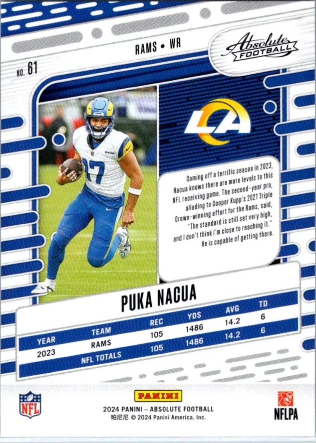 This is a nice example of a 2024 Panini Absolute #61 Puka Nacua Retail