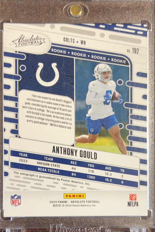 You are purchasing a 2024 Panini Absolute Football Anthony Gould #192 Blue Mosaic 04/50 RC. You will receive the exact item in the photographs. Thank you for looking.