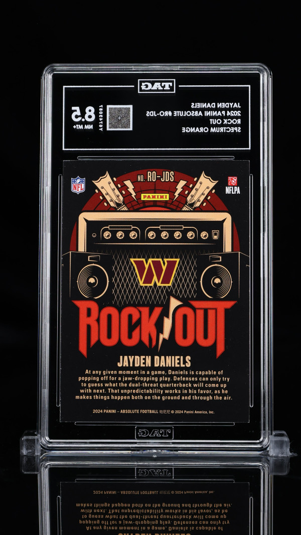 You are purchasing a 2024 Panini Absolute Rock Out Jayden Daniels #RO-JDS Spectrum Orange 01/75 Rookie TAG 8.5. You will receive the exact item in the photographs. Thank you for looking.